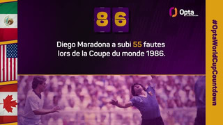 Diego Maradona a été la cible de tous les défenseurs en 1986, lors du Mondial. Il a subi 55 fautes lors de la compétition.
